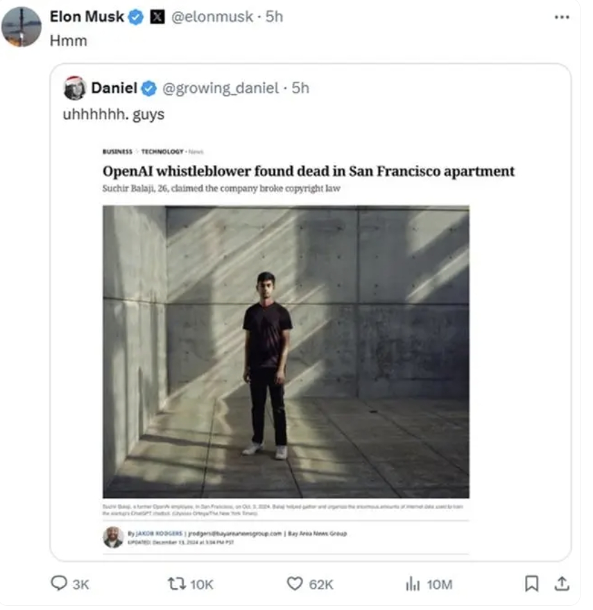 ⭐OpenAI吹哨人被证实死亡!年仅26岁