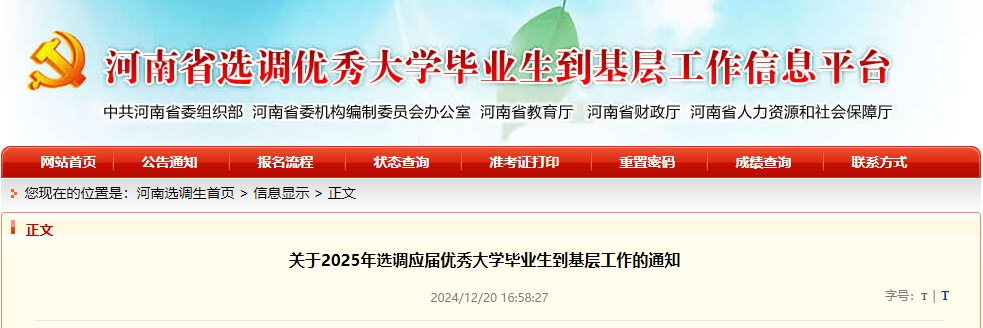 ⭐河南选调应届优秀大学毕业生到基层工作