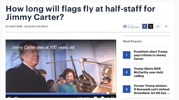⭐卡特去世后美媒披露一个细节:美国联邦政府机构,将为他降半旗30天