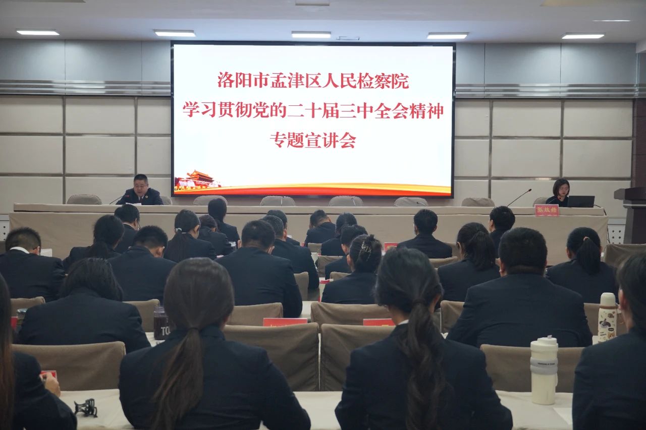 11月6日,洛阳市孟津区人民检察院召开党的二十届三中全会精神专题宣讲会,邀请中共洛阳市孟津区委党校干训室主任、讲师张纹绮作专题宣讲。会议由党组成员、政治部主任黄丙章主持,党组成员及全体干警参加。