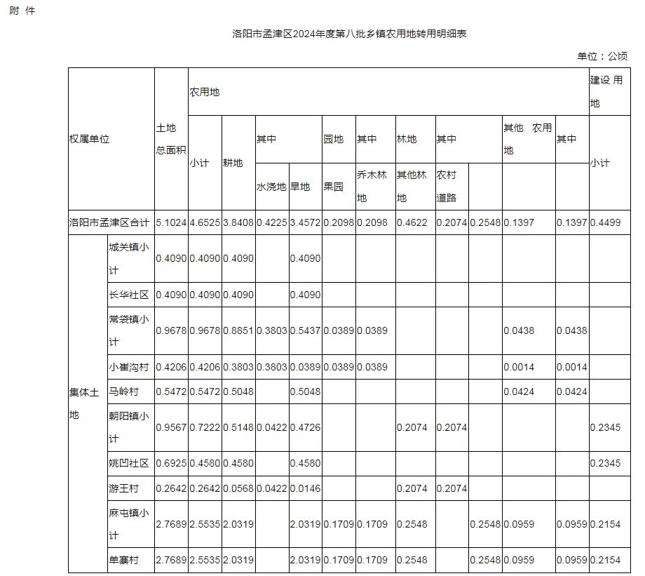 附件:洛阳市孟津区2024年度第八批乡镇农用地转用明细表