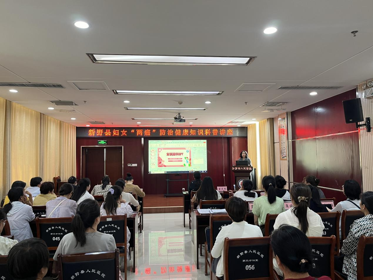为深化妇女健康意识、提升妇女干部在服务群众方面的专业能力和服务水平,6 月 4 日,新野县妇联联合县人民医院开展乳腺癌与宫颈癌(简称“两癌”)健康知识专题讲座。来自全县各乡镇妇联副主席、村(社区)妇女主任等 80 余名代表参与培训,以专业 “充电” 赋能妇女健康事业发展。