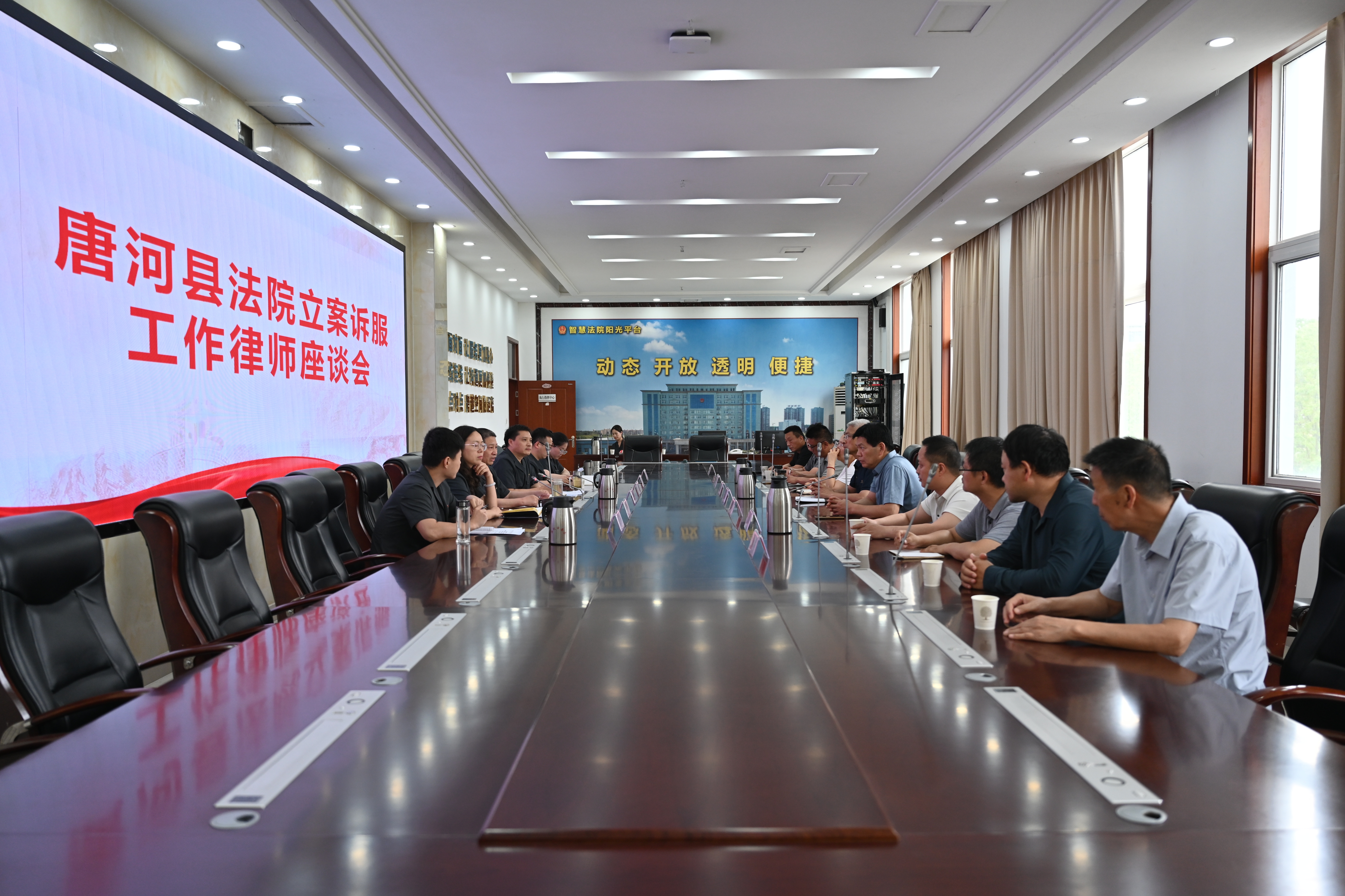 为进一步提升诉讼服务水平,6月4日,唐河县人民法院组织召开立案诉服工作律师座谈会。会议由院党组成员宋明生主持,县司法局及辖区5家律师事务所、法律服务所代表受邀参会。