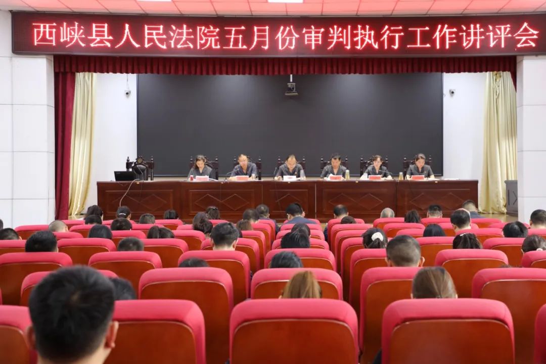 6月9日下午,西峡县人民法院召开2025年五月份审判执行工作讲评会,全面总结回顾1—5月审判执行质效工作开展情况,动员广大干警振奋精神,全力以赴冲刺上半年目标任务。院党组书记、院长肖新征出席会议并讲话,党组副书记、副院长胡建成主持会议。全体干警参加会议。