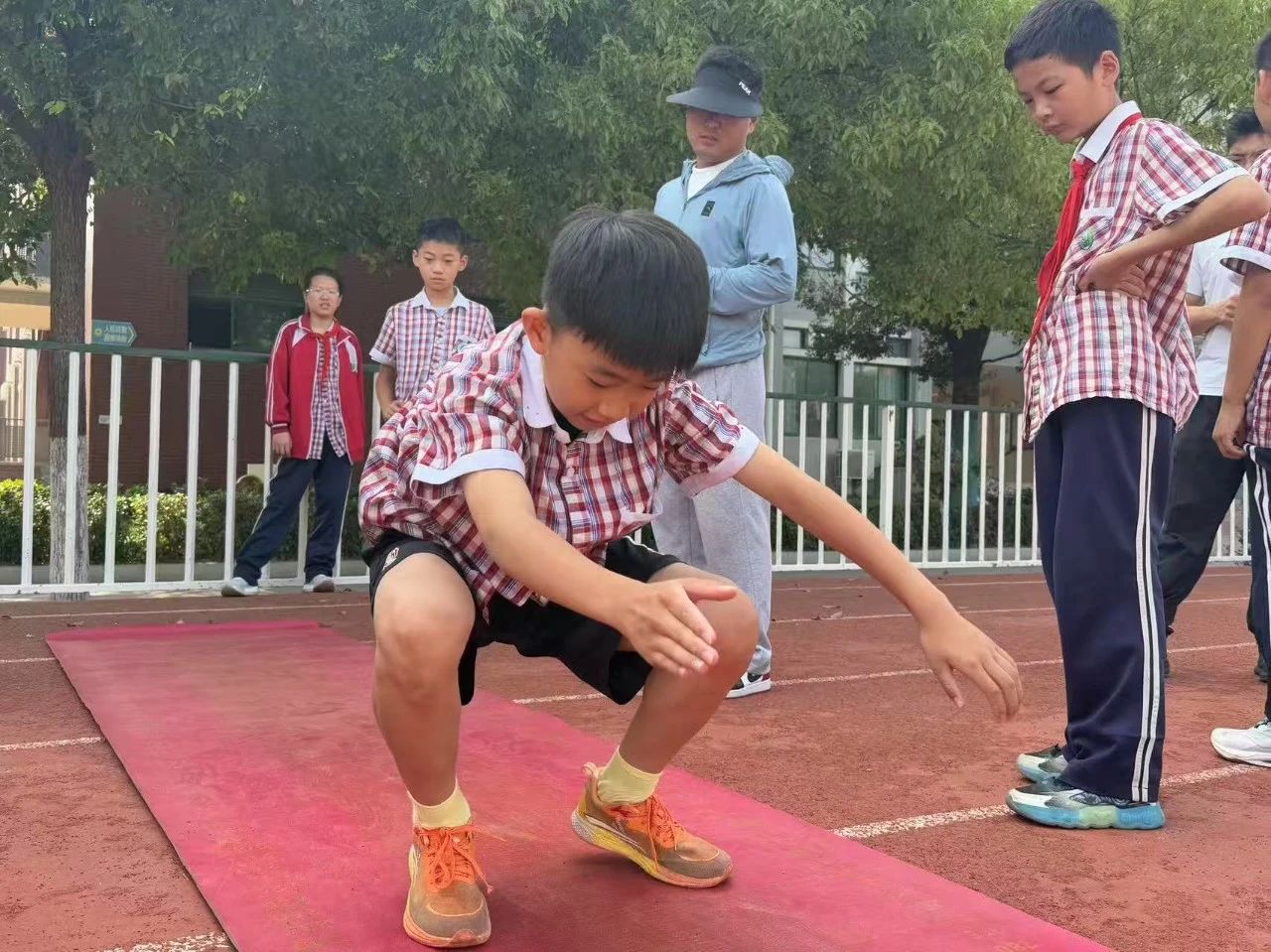 在立定跳远场地,同学们摩拳擦掌,蓄势待发。一声令下,他们奋力一跃,如离弦之箭,在空中划出优美的弧线,落地时扬起的沙土,仿佛在为他们的勇敢喝彩!跳绳区域同样热火朝天,一根根彩绳飞舞,一个个身影跃动。无论是快速单摇,还是花样双摇,同学们都全力以赴,绳子与地面撞击的“哒哒”声,奏响了活力的乐章。老师们认真记录成绩,鼓励着每一位同学突破自我,现场充满了欢声笑语与加油助威声。