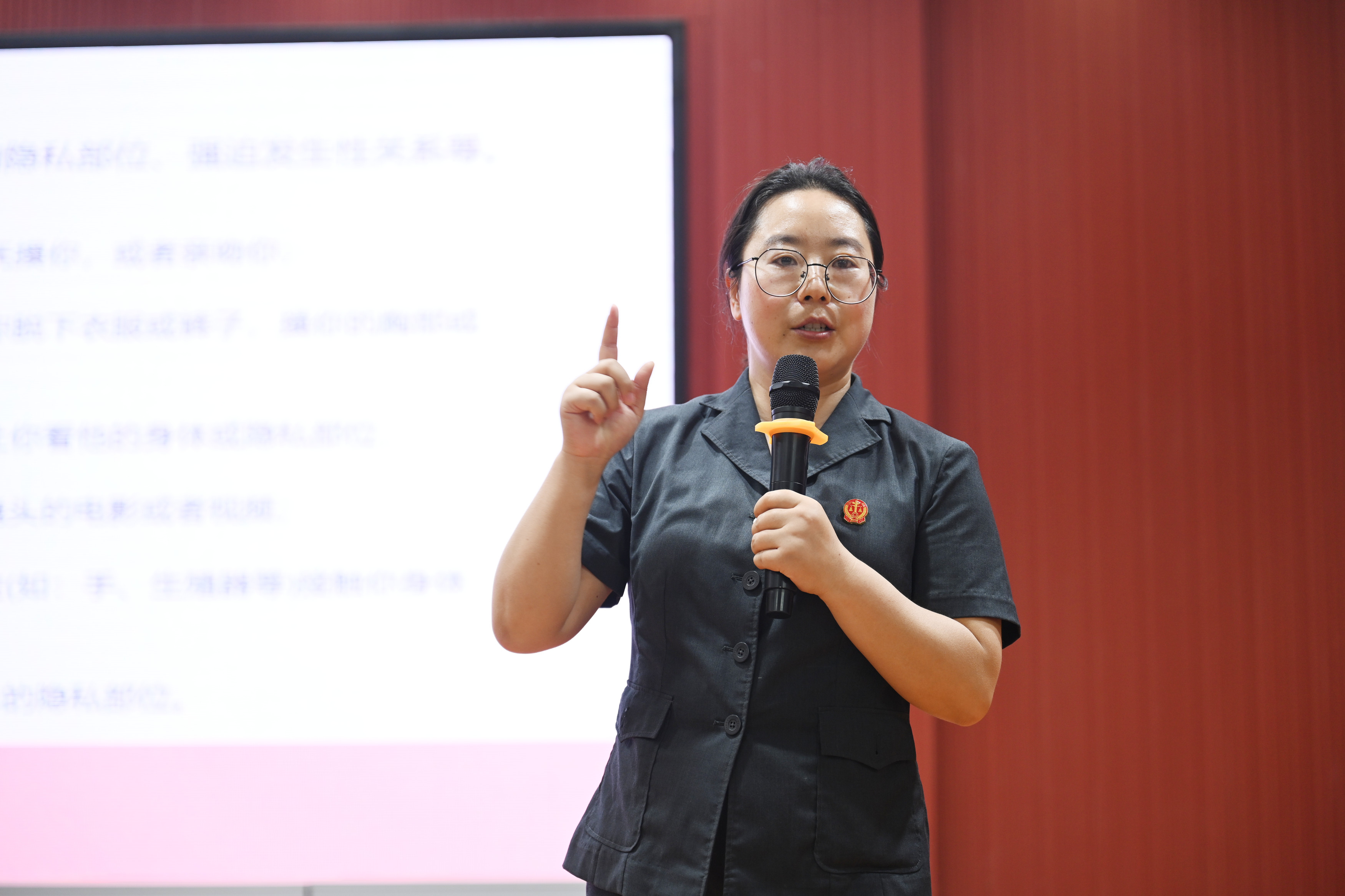 “隐私部位像身体密码,谁也无权破解。”宣讲中,闫宗淼以案释法,展示熟人的“伪善面具”下暗藏的危险;用“背心短裤覆盖之处”代替抽象术语,让隐私界限清晰可触;更传授“不坐黑车、警惕网络邀约”的实用防护锦囊。当讲到“拒绝不当接触要像按下警报器一样干脆”时,台下学生眼神专注,无声点头如林,身体主权意识悄然扎根。