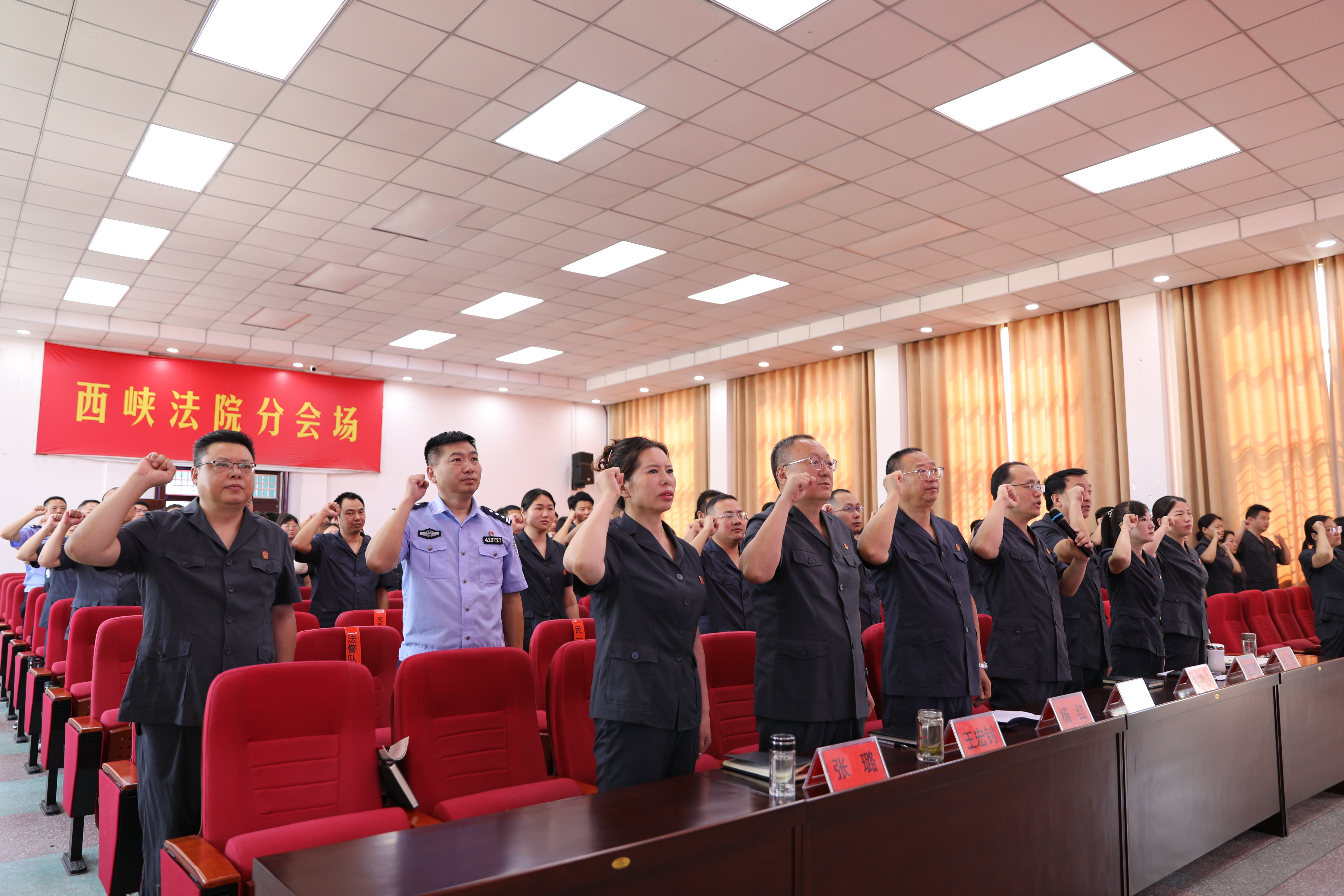 活动伊始,全体党员干警举起右拳,共同重温入党誓词:“我志愿加入中国共产党……随时准备为党和人民牺牲一切,永不叛党!”这熟悉的誓词,字字千钧,激荡着每一位党员的心房。