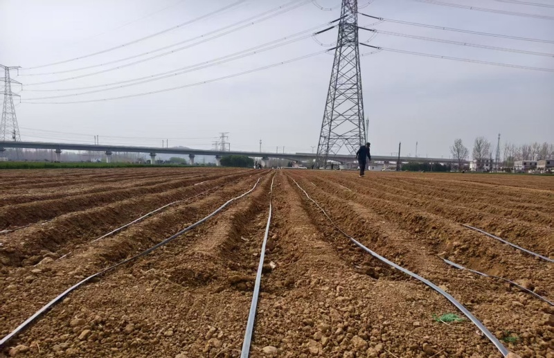 4月2日清晨,宝丰县文峰街道薛潭村尚笼罩在一片朦胧雾气之中,生姜地里早已是一片热火朝天的劳作景象。生姜种植户李国强半蹲着身子调整滴灌带间距,黝黑的手指在银色管道间灵巧穿梭。