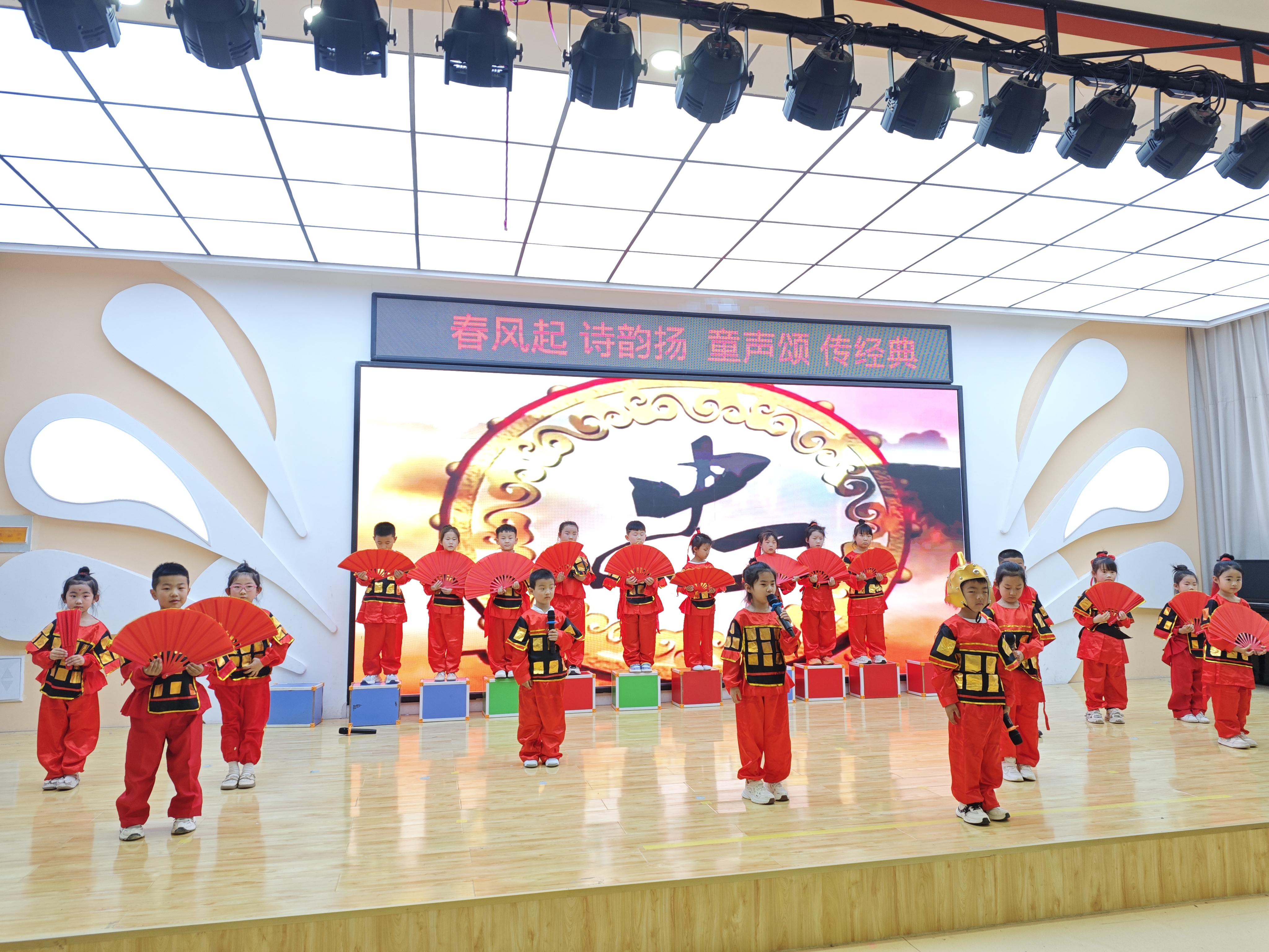 活动在悠扬的古乐声中拉开帷幕。孩子们身穿各式汉服,或手持书卷吟诵《咏鹅》《悯农》《木兰辞》等经典诗词,或随着音乐翩翩起舞,演绎《声声慢》《水调歌头》《满江红》等传统歌舞和情景演绎表演。稚嫩的童声与优美的舞姿相得益彰,赢得现场家长和老师的阵阵掌声。