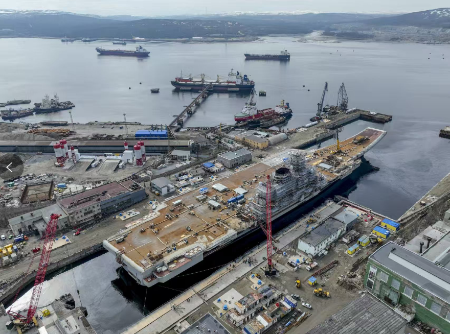 该航母在完成叙利亚的作战任务后,于2017年被送去船坞进行维修和现代化升级,原计划于2022年恢复服役,但由于技术、资金等问题导致重新服役时间一再推迟。维修期间,这艘航母还发生了多起事故。比如,2018年,俄罗斯最大的浮动船坞沉没,起重机砸到航母甲板,导致舰体受损;2019年,航母上发生了重大火灾。