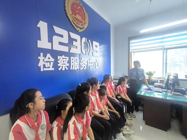 活动伊始,同学们在检察干警的引导下,开启了一场充满“法治味”的参观之旅。第一站来到1楼的12309检察服务中心,在这里,干警用通俗易懂的语言向同学们介绍了12309检察服务中心的功能,从如何受理群众诉求到如何保障群众权益,生动讲解让同学们初步认识到检察机关作为“人民群众法律贴心人”的重要角色。在1楼办案区,干警还向同学们讲解了办案流程和相关设备的用途,让大家了解到法律的严谨与公正。每一个细节的讲解,都在同学们心中播下了法治的种子。