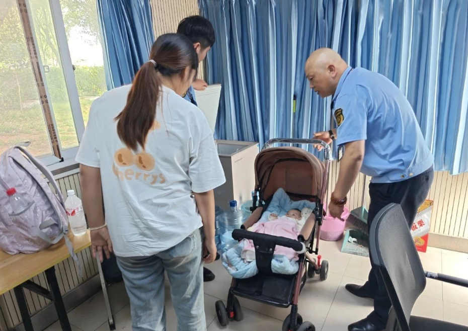 当日14 时,信阳东站新七大道出站口,执法人员赵耀在例行巡查时,注意到一名背着行李的年轻女性坐在执法岗亭旁,身旁婴儿车中还睡着一名襁褓中的婴儿。敏锐的执法经验让赵耀察觉异样,女子时而张望出站口,时而低头摆弄手机,脸上难掩焦虑神色。