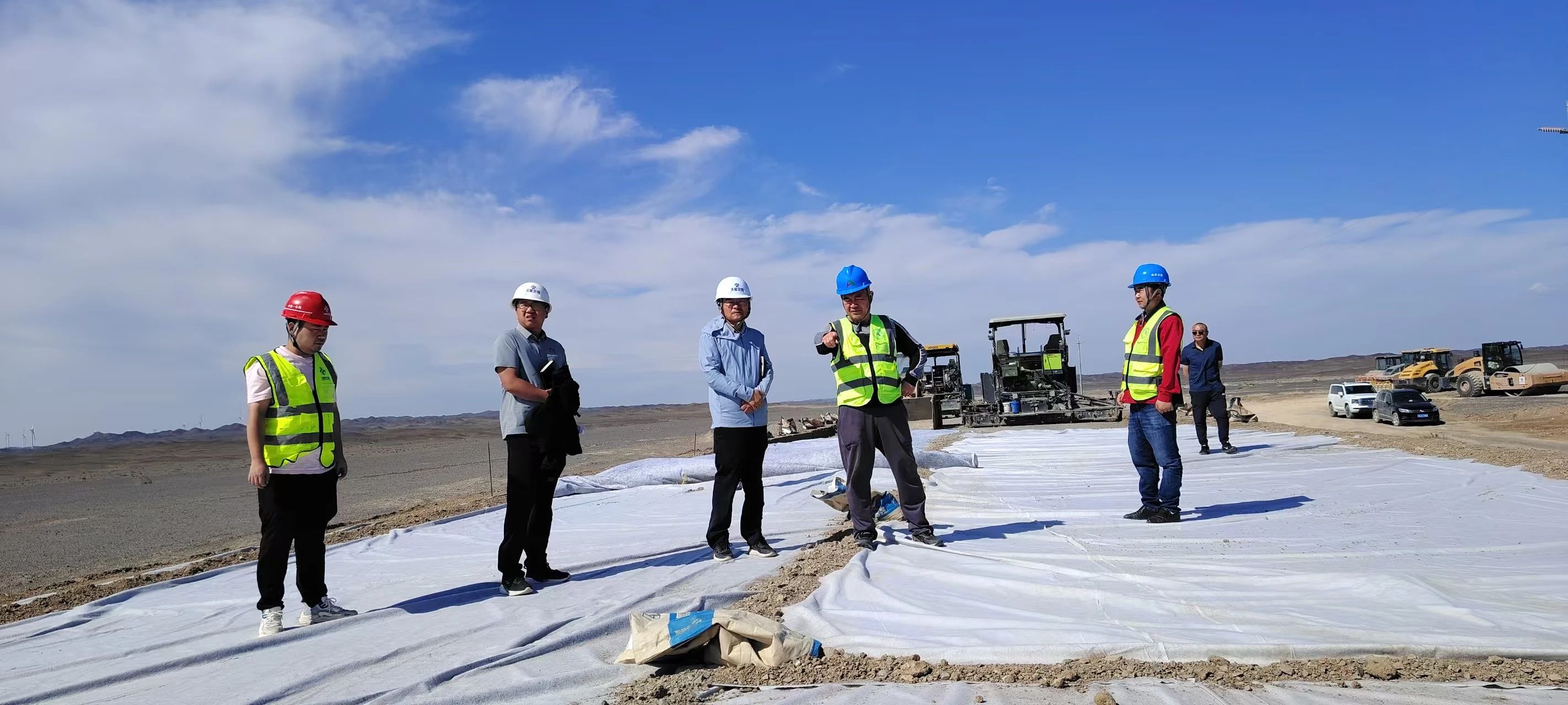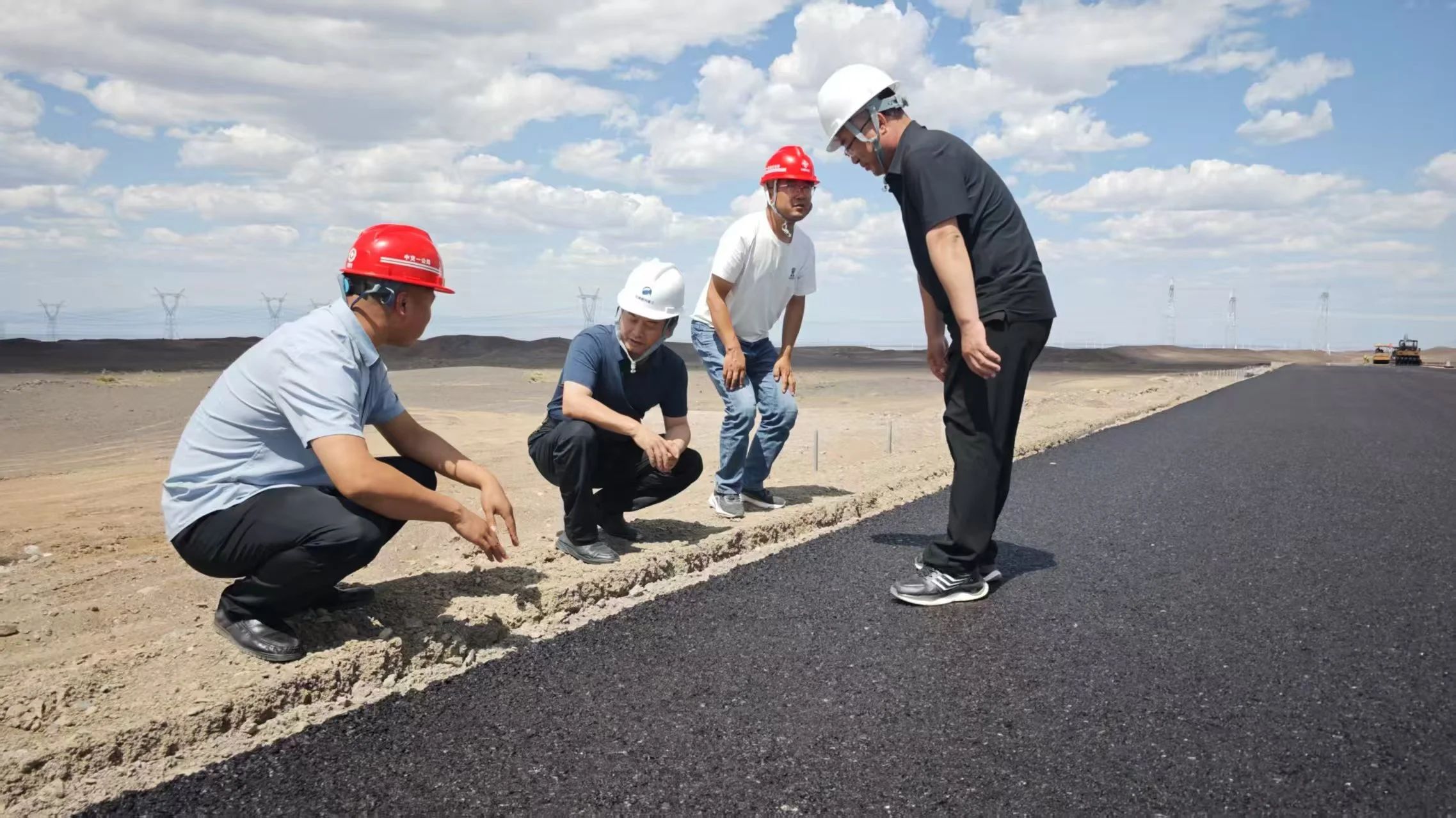 正午的S221线大长沟(331线)经明鑫煤矿至G335线公路建设工地,太阳火辣辣的,未着任何防晒保护的两位专家顶着烈日认真查看台背回填工艺流程、临河段桥涵基坑地下水位高、水泥稳定砂砾基层施工质量控制,对其中存在的问题提出了建设性的改进意见。该项目由河南交通设计、创优及日常检测服务,是极具河南援疆特色的哈密市重点公路项目。