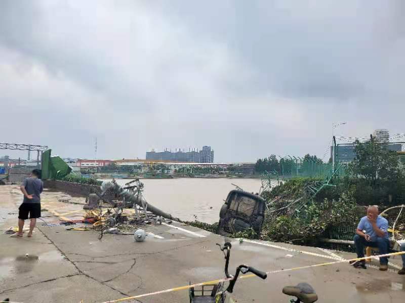 正如赵中营和同事李东洋们判断的那样,没过多久,15米高的10千伏线杆倒向马路积水中。